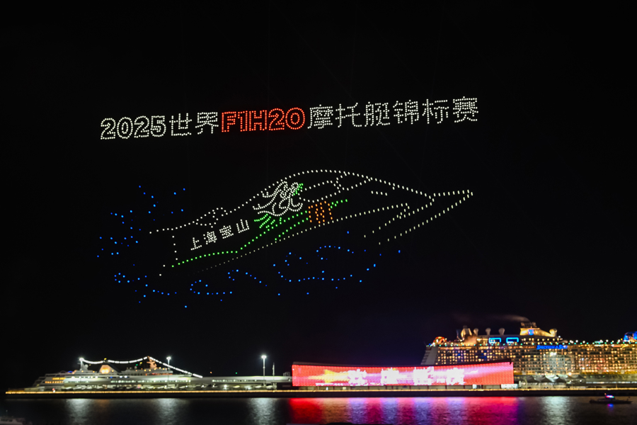 无人机编队组成“上海宝山号”水上摩托艇逐浪而行的画面,预告着国际顶尖水上动力体育赛事——2025年世界F1H2O摩托艇锦标赛中国上海大奖赛的到来。继去年成功举办后,大赛今年再度落户上海宝山,10月2日至4日在宝山长滩区域举办。观看高水平选手水上“对决”之余,大家还可以欣赏水上飞人和尾波冲浪表演。