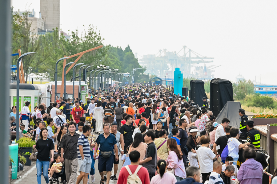 这个国庆假期,绵延6公里的宝山滨江亮点频出,除了长滩艺术节,还有2025年世界F1H2O摩托艇锦标赛中国上海大奖赛、吴淞口空中剧场表演、长江口水上运动嘉年华、长江文化美食节等节赛活动。随着一拨拨人流涌入,宝山滨江迎来了阵阵消费热潮。