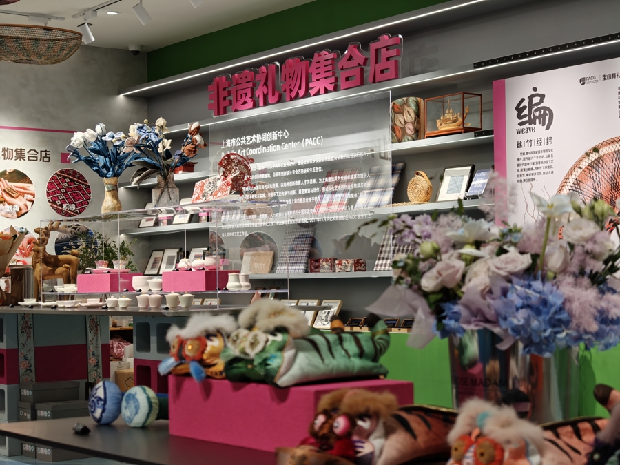 宝山区文旅局相关负责人介绍,“宝山有礼”焕新,一是与上海公共艺术协同创新中心形成合作,助力店铺日常运维;二是有了新视野,在立足宝山非遗文创开发的基础上,引入全国各地的优秀非遗项目;三是增设互动体验,不定期邀请非遗传承人驻场展示,与市民游客面对面交流。