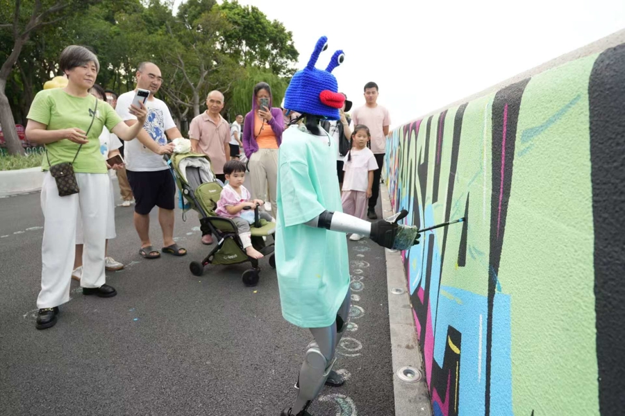 听说宝山滨江堤岸的涂鸦又“上新”了,10月2日下午,来自上海市行知实验中学的小盛兴奋地和家人一起去观赏。之所以心系涂鸦,是因为他在今年“五一”假期和同学们一起参加了“千米江堤绘长江”活动,为原本灰色的江堤披上彩色外衣。